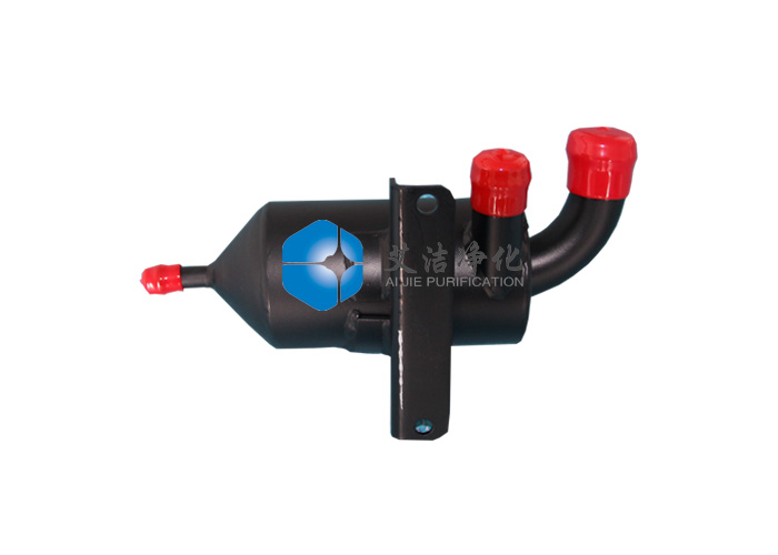 艾潔凈化生產(chǎn)的旋風(fēng)式油氣分離器是讓氣液混合氣經(jīng)過切向進(jìn)氣道或是螺旋進(jìn)氣道進(jìn)入分離器內(nèi),使混合氣在分離器內(nèi)旋轉(zhuǎn)運(yùn)動(dòng),以此產(chǎn)生離心力來實(shí)現(xiàn)油滴的分離,它的分離機(jī)理與主動(dòng)離心式油氣分離器相同,只是不需外界提供動(dòng)力。